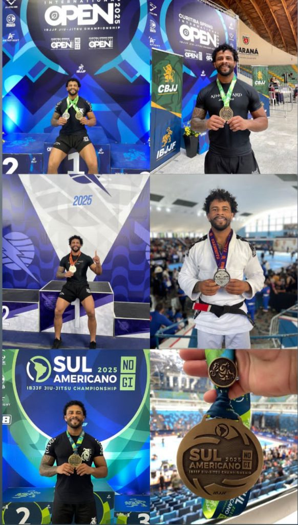 O atleta de Jiu-Jitsu Lucas Ramos, que também atua como professor de Educação Física e é estudante de Fisioterapia, tem se destacado no cenário competitivo com uma sequência impressionante de conquistas. Nos últimos três finais de semana, Lucas participou de três importantes campeonatos e subiu ao pódio em todos eles, somando cinco medalhas em diferentes categorias.